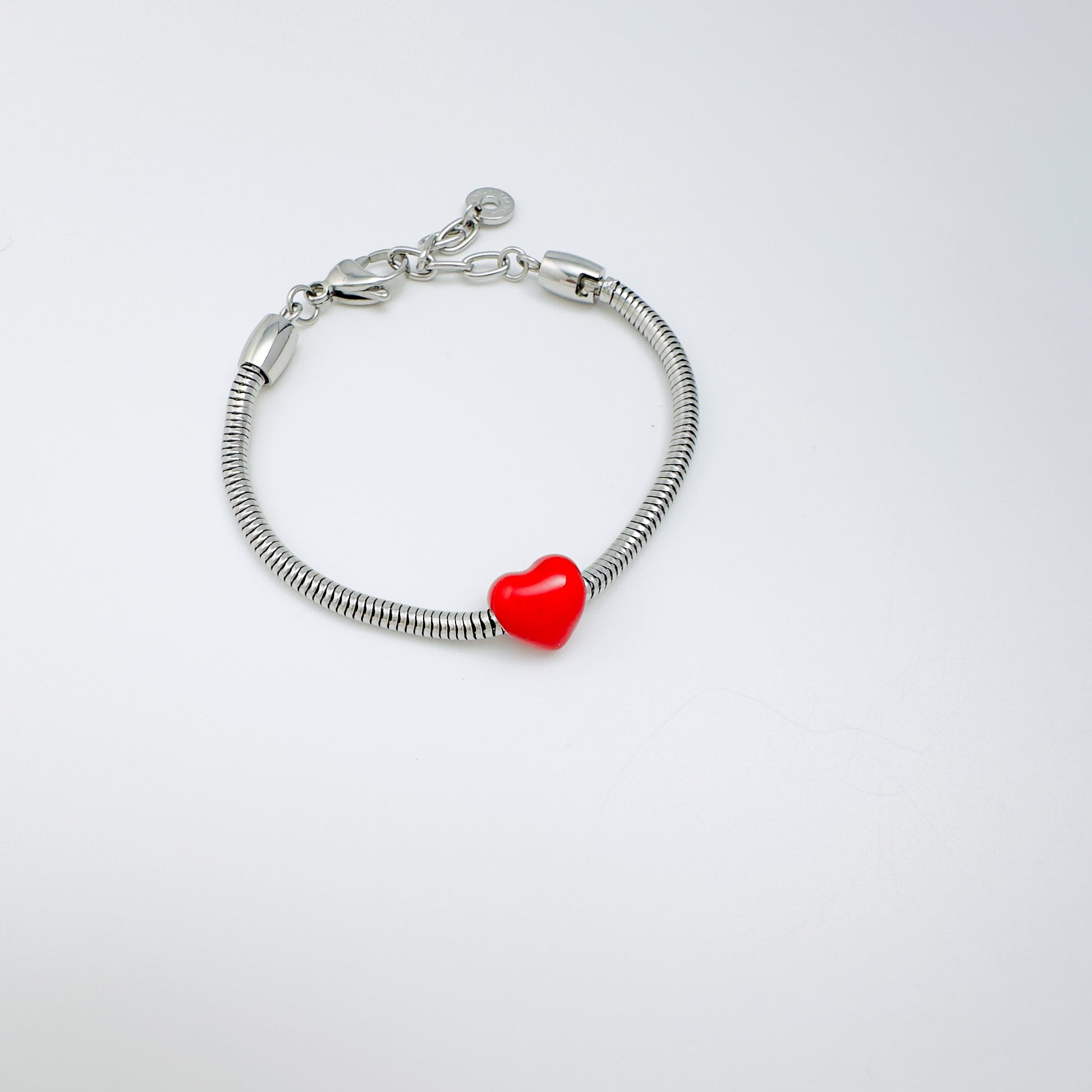 This striking red heart charm adds a bold touch of love to your snake chain bracelet. Crafted with a glossy finish, its sleek design measures 10mm by 10mm, making it a perfect, eye-catching accent.