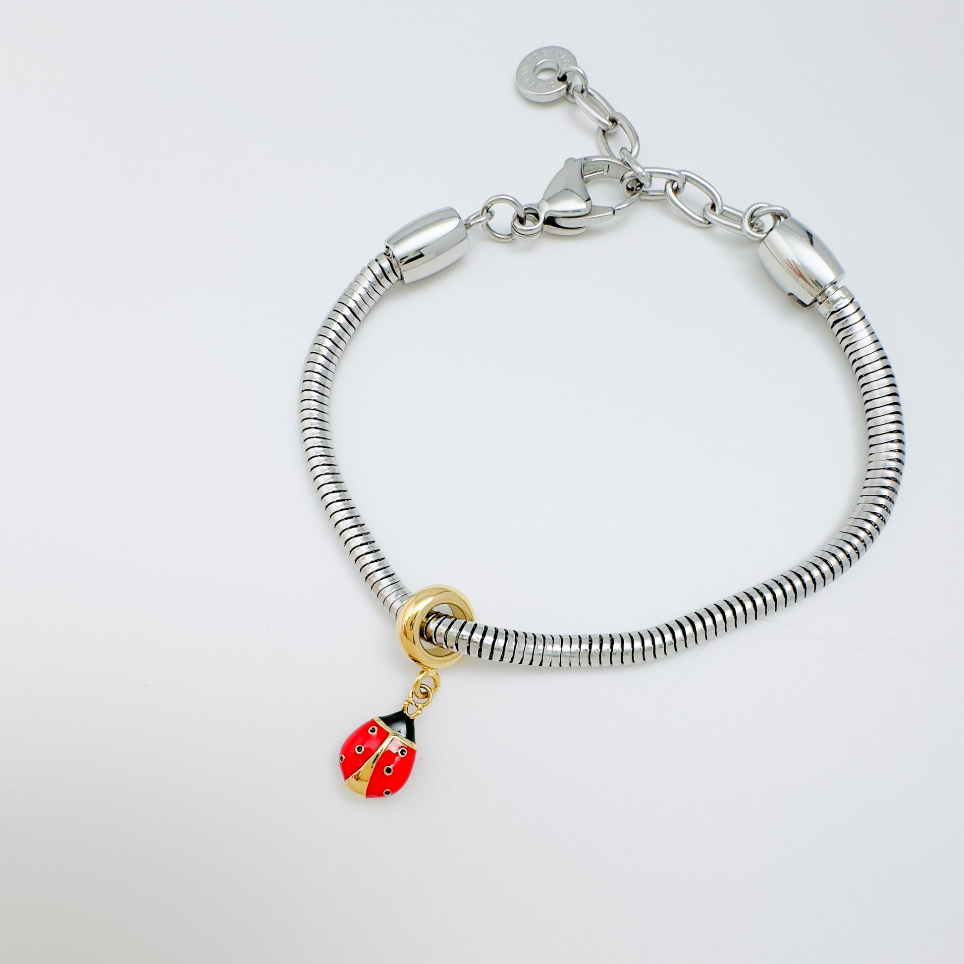 Carry a symbol of luck and joy with our delicate Ladybird Charm, crafted in a radiant gold-plated finish. Its tiny, detailed design shines with waterproof and anti-tarnish durability, making it a charming addition to your bracelet.