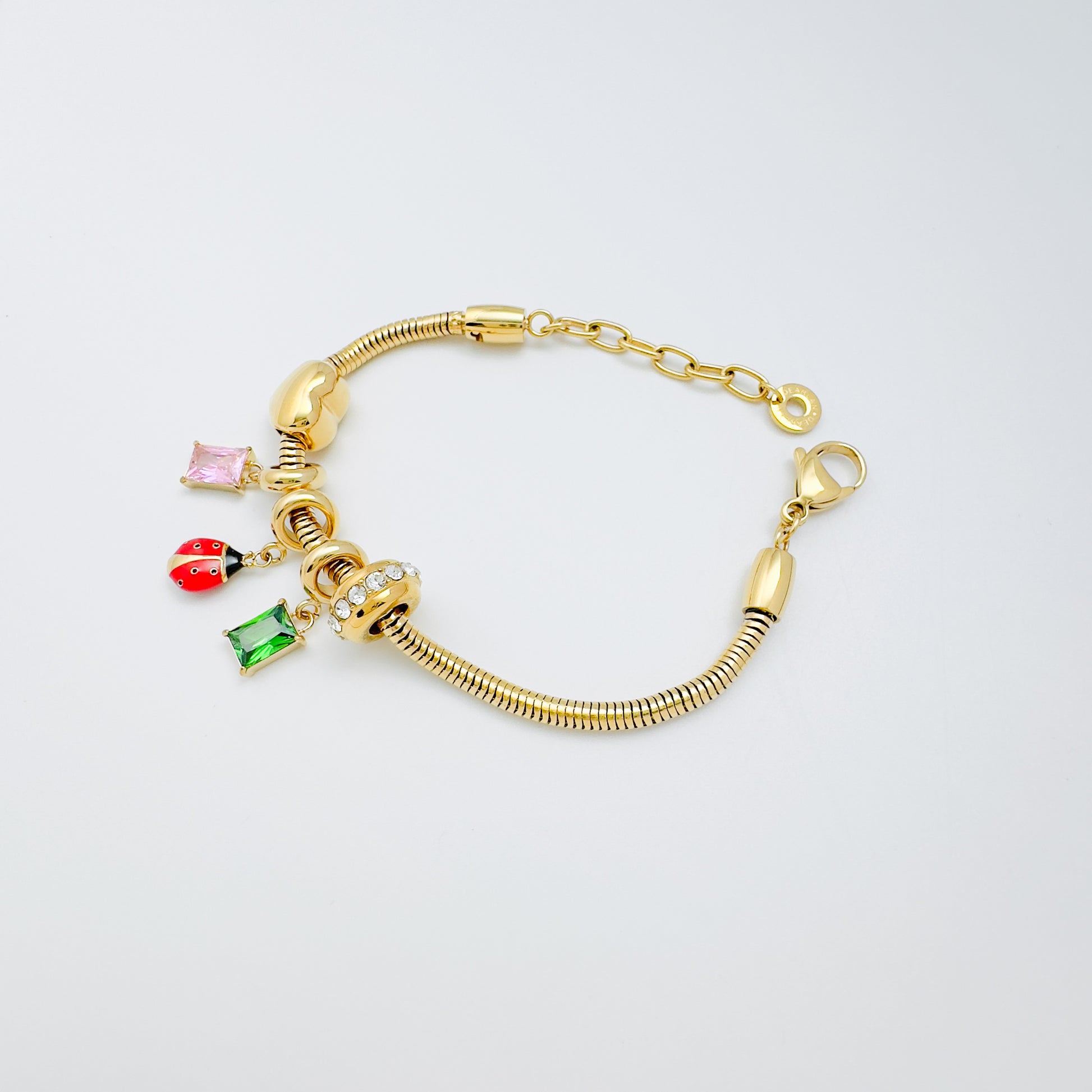 Bring elegance and color to your bracelet with our Zirconia Square Charm, available in green or pink. Set in a radiant gold-toned finish, this sleek square design is waterproof, anti-tarnish, and perfect for everyday wear.